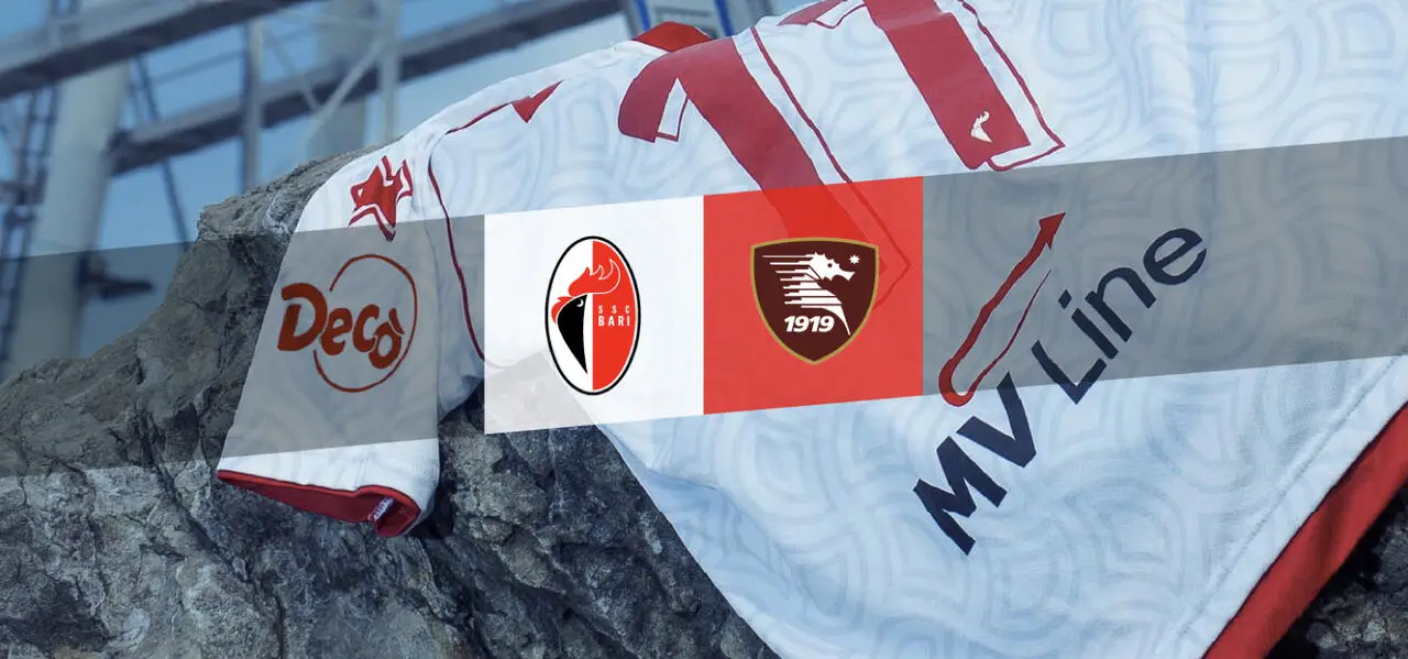 Squadre in campo al San Nicola: Bari in completo bianco con inserti rossi, Salernitana in maglia granata, calzoncini neri, calzettoni grananta.