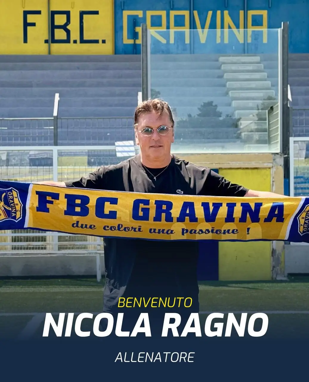 La FBC Gravina comunica di aver nominato mister Nicola Ragno come nuovo allenatore della Prima squadra gialloblù. Molfettese di origini, Ragno è un tecnico esperto e vincente, capace di raggiungere risultati importanti in piazze blasonate come Andria, Potenza, Bisceglie e Nardò. Dopo la carriera da calciatore, sulla panchina si è affermato per i suoi straordinari successi, vincendo diversi campionati e play-off, contraddistinguendosi per la sua professionalità e dedizione al lavoro. A mister Ragno, presentato già nella serata di ieri “FBC Gravina 2025-2030”, il più caloroso benvenuto e l’augurio di poter raggiungere gli obiettivi prefissi.