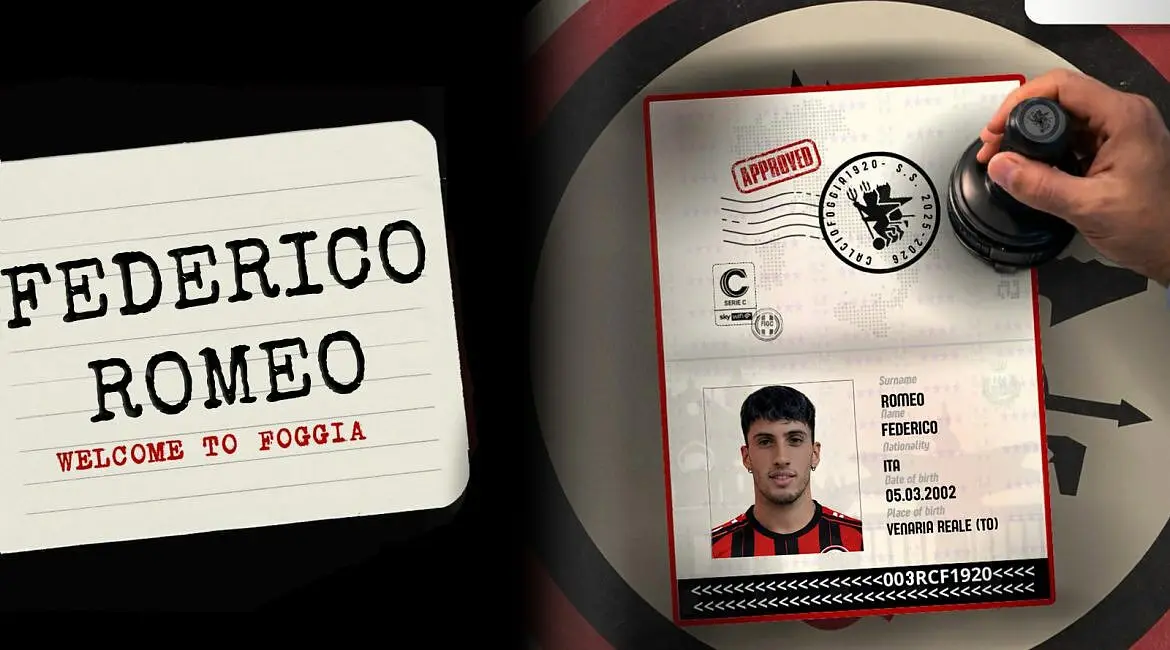 Il Calcio Foggia 1920 comunica di aver acquisito, a titolo temporaneo con diritto di riscatto, le prestazioni sportive del calciatore Federico Romeo dalla Ternana Calcio.