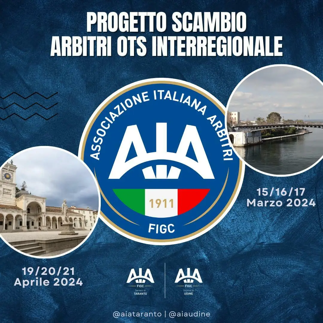 La Sezione A.I.A. di Taranto in collaborazione con il Comitato Nazionale A.I.A. e la Sezione A.I.A. di Udine ha realizzato un progetto di "Scambio Arbitri" tra le due Sezioni. Sabato 16 Marzo alle ore 19 la presentazione del progetto
