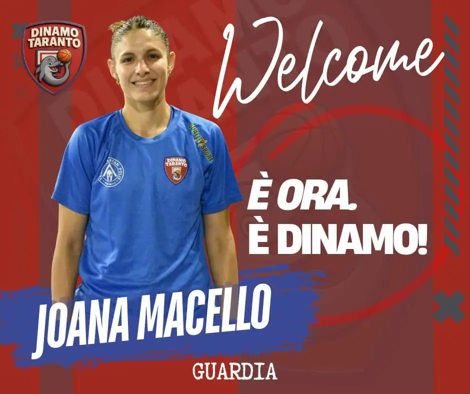 La Dinamo Taranto ha annunciato l'ingaggio di Joana Macello, nuova giocatrice che andrà a rinforzare il roster rossoblù in vista del campionato di Serie B di basket femminile.