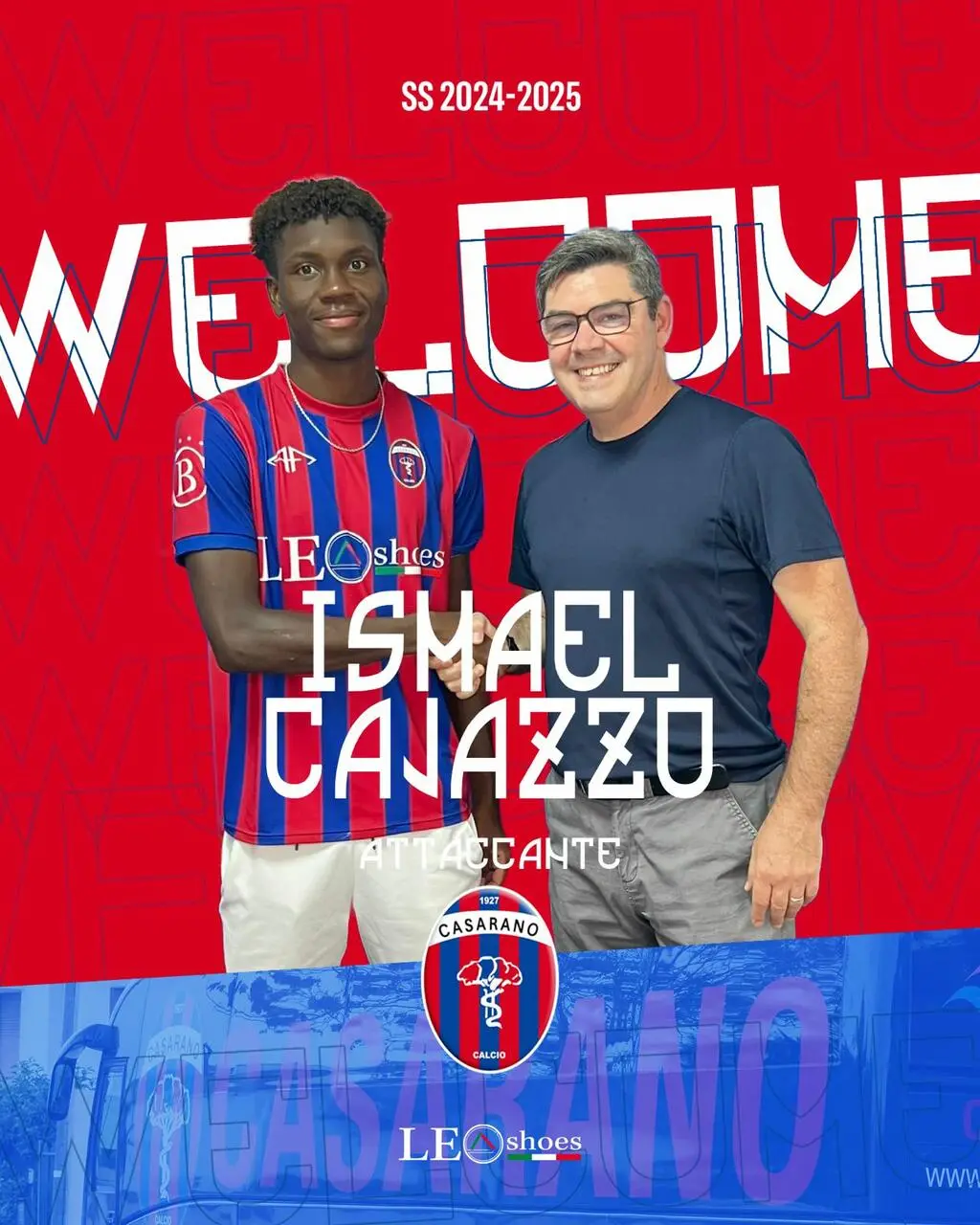 La società Casarano calcio comunica di aver acquisito il diritto alle prestazioni sportive del calciatore Ismael Cajazzo, attaccante esterno, classe 2004. Di nazionalità canadese, ha iniziato la sua carriera nel Rio Ave, in Portogallo per poi approdare, nella passata stagione nel Rotonda: per lui 31 gare di campionato e sette gol firmati.