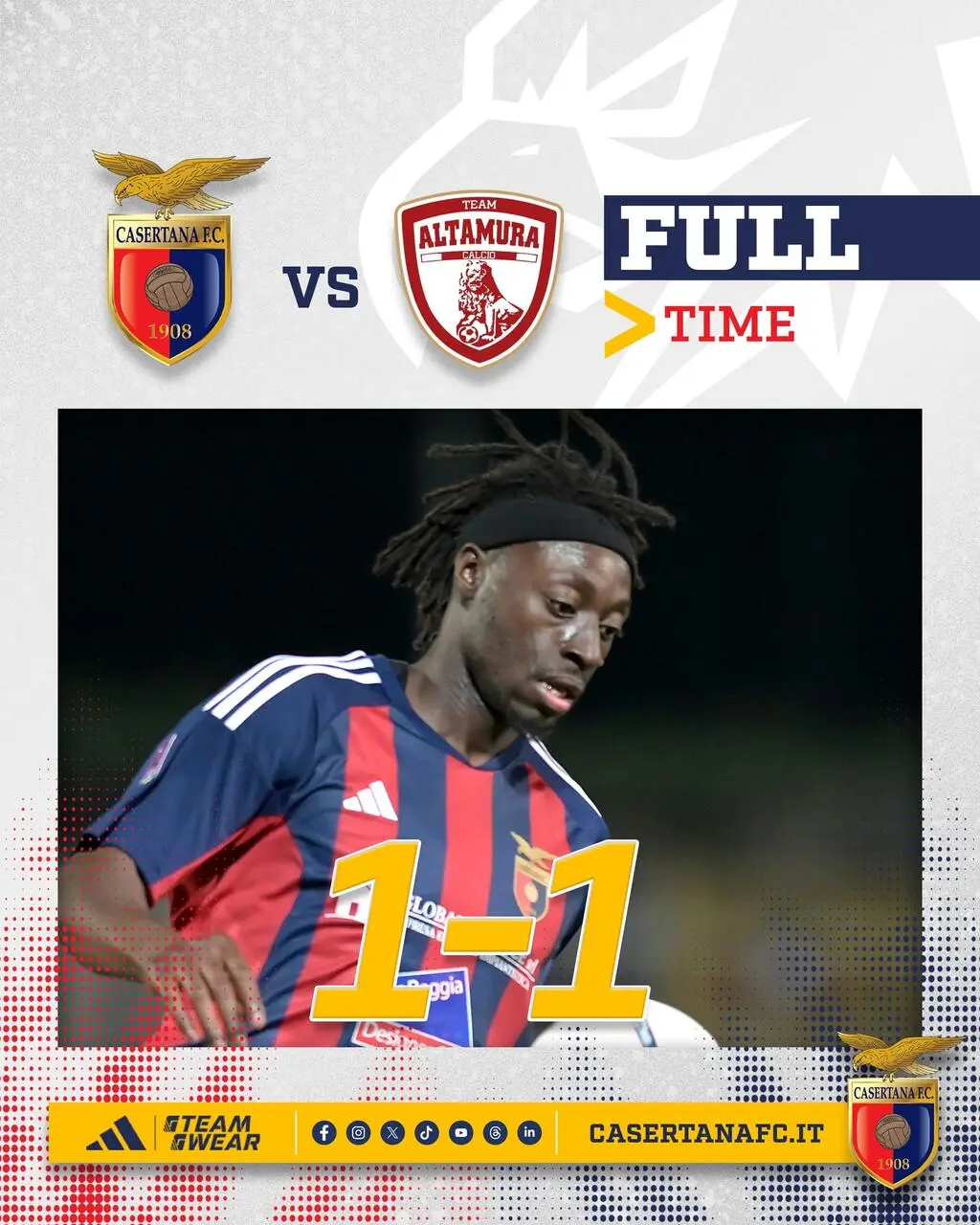 Casertana (4-2-3-1): Vilardi; Falasca, Kontek, Gatti, Fabbri; Collodel, Proia (68’ Bianchi); Paglino (68’ Capasso), Deli (79’ Iuliano), Carretta (79’ Bakayoko); Satriano (52’ Asencio). A disposizione: Zanellati, Pareiko, Salomaa, Matese, Giugno, Rocca. Allenatore: Manuel Iori
