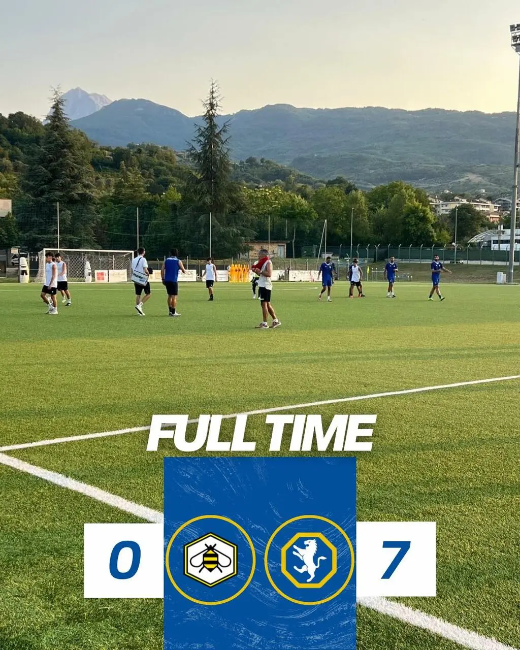 Si conclude 0-7 il match tra ASD Montorio 88 e la Fidelis Andria. I biancazzurri battono i gialloneri nell’allenamento congiunto, primo test della stagione. Al 13’ del secondo tempo arriva il terzo gol della squadra andriese con una bella azione tra Barberini e Orlandi, di prima nel taglio per Trombino che segna la terza rete. Al 19’ l’angolo di Orlandi, sponda di Tsioungaris di testa, per il tap in di Cipolletta che finalizza il quarto gol. Al 33’ grazie all’imbucata perfetta di Trombino arriva la quinta rete per i biancazzurri ad opera di Labianca, che scarta un avversario e tira a giro sul secondo palo, è gol. E poi, azione di Tsioungaris che scarica per Trombino, Trombino di prima per Orlandi che si invola verso la porta e segna la sesta rete. In conclusione, punizione di Orlandi per Trombino che crossa al centro dove trova Lias Montero che realizza il settimo gol.