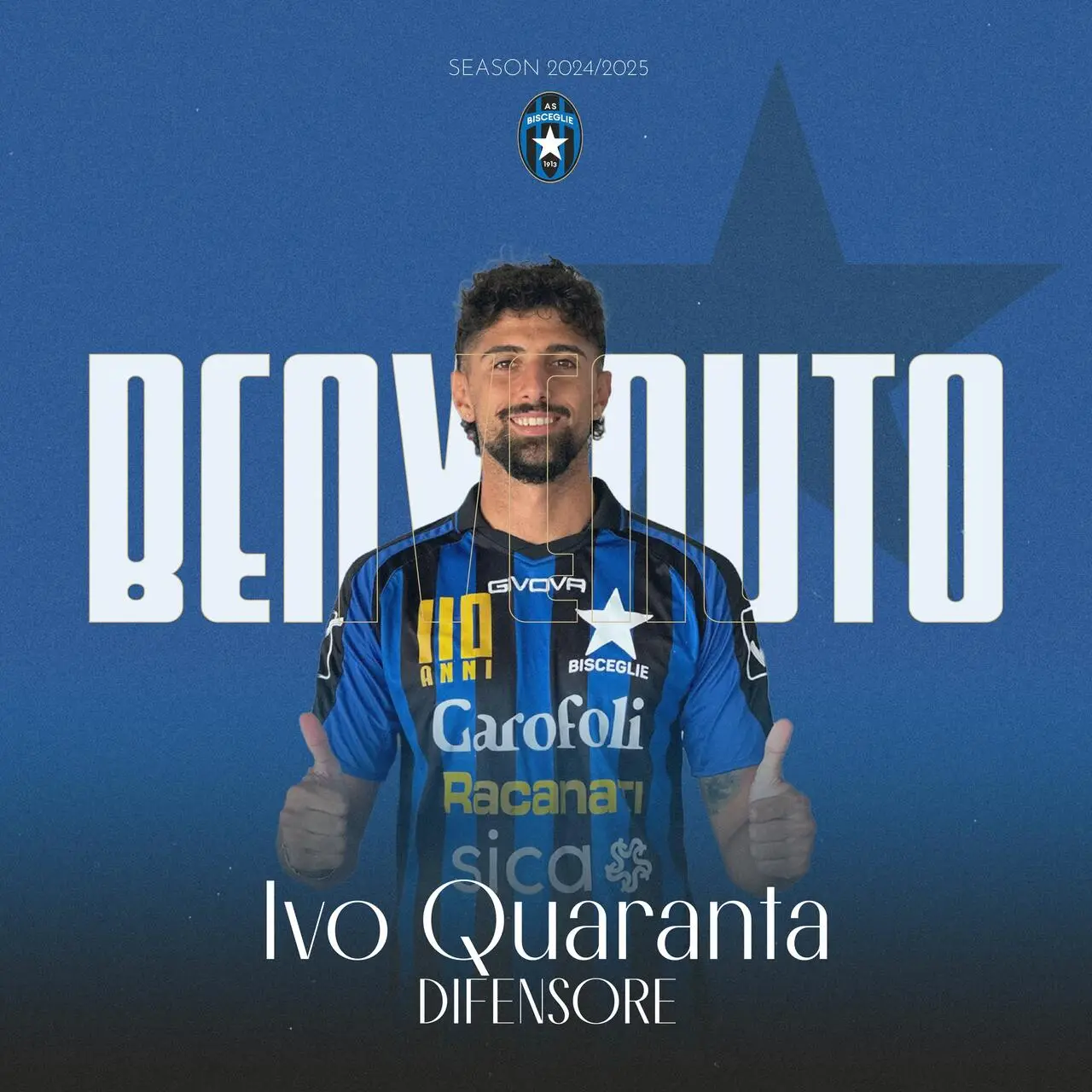 La campagna acquisti dell’AS Bisceglie Calcio 1913 prosegue serrata in vista della prossima stagione: la società è lieta di annunciare l’arrivo, agli ordini di Mister Giuseppe Scaringella, del difensore Ivo Quaranta, 23 anni, al Gravina nelle ultime due stagioni.