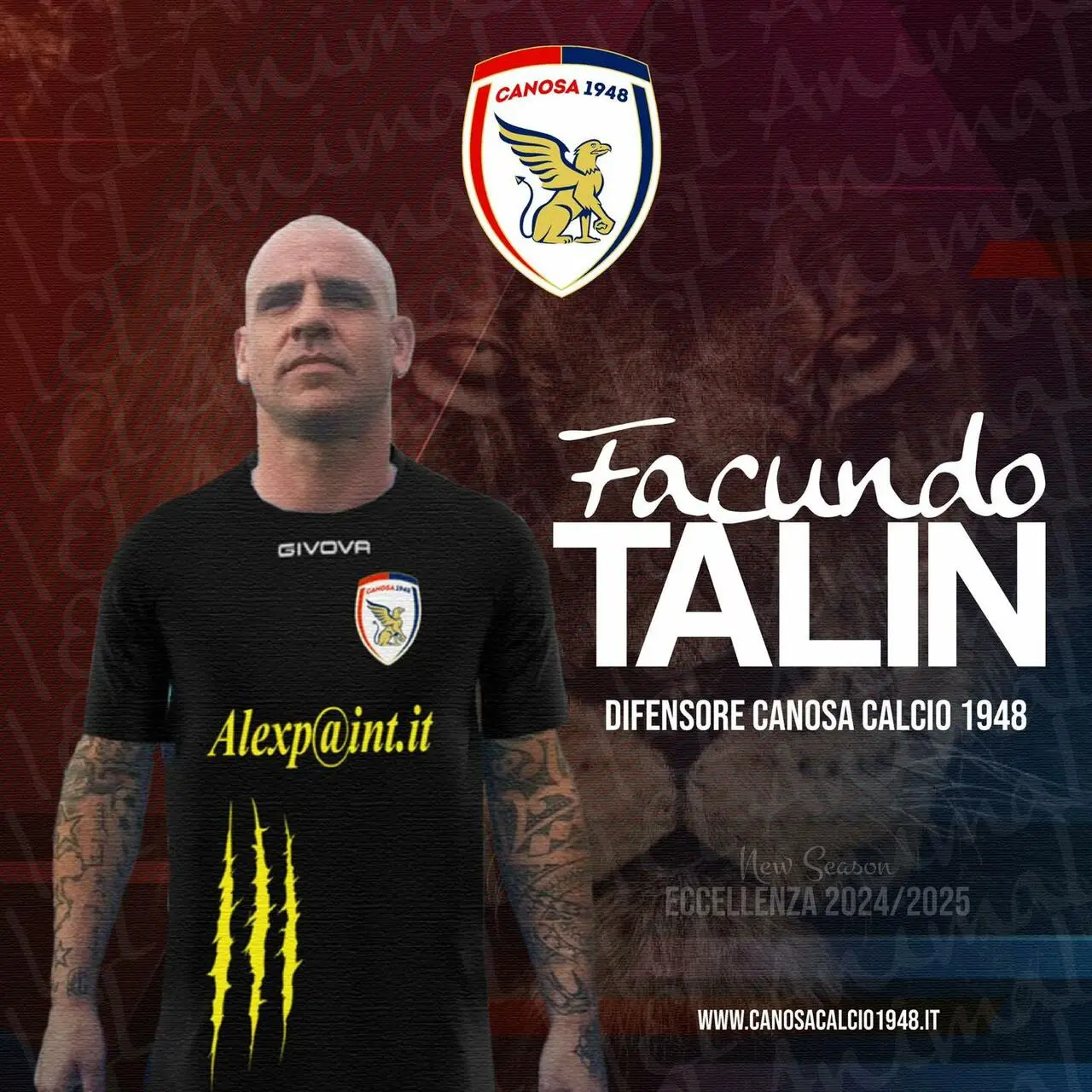 Soprannominato “El Animal” per carisma, grinta e carattere, Talìn, in attesa degli ulteriori colpi di mercato, andrà a rappresentare una certezza nello scacchiere di mister Di Simone, in un reparto orfano dell’ormai ex Gianni Montrone. «Sono molto felice di aver accettato questa nuova sfida – le prime parole di Facundo Talin -. Non vedo l’ora di unirmi alla squadra per iniziare la stagione, il gruppo sarà fondamentale per raggiungere gli obiettivi prefissati. Sono uno a cui piace vincere, ho fame di vittorie e questo dovrà contraddistinguerci. Ci vediamo presto Canosa».