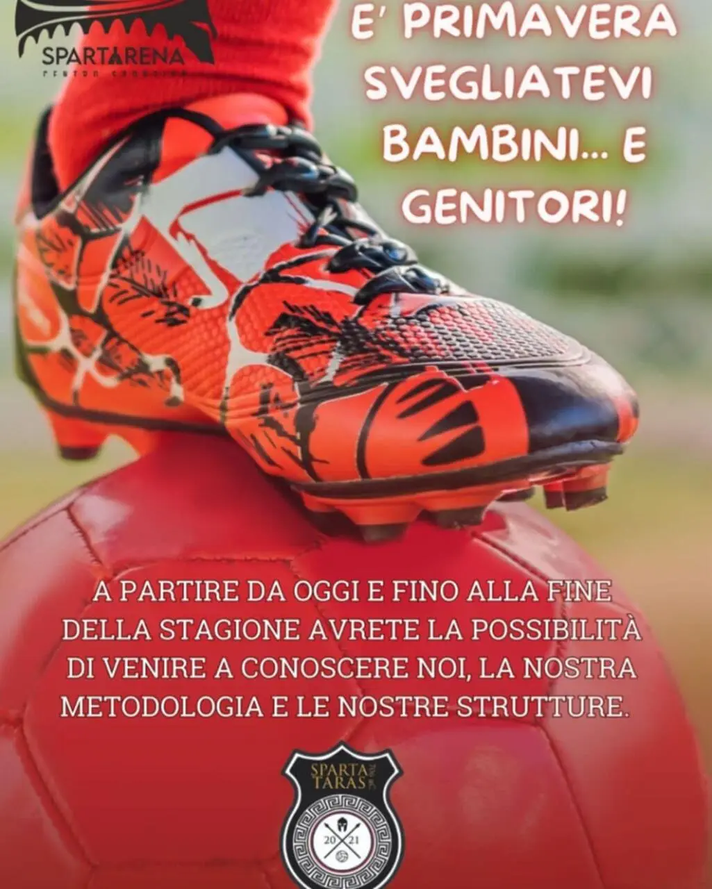 Un super maggio con una grandissima iniziativa della giovane società Sparta Taras che in questi anni, però, ha già fatto parlare di se. Di fatto fino al termine della stagione tutti i bambini avranno la possibilità, attraverso degli Open Day anticipati, di conoscere meglio il mondo Sparta e le metodologie di lavoro dello staff tecnico. Una bella occasione da non perdere…!