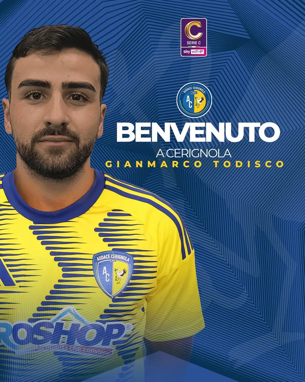 La S.S. Audace Cerignola S.r.l. comunica di aver acquisito dall’U.S. Avellino le prestazioni sportive del calciatore 𝐆𝐢𝐚𝐧𝐦𝐚𝐫𝐜𝐨 𝐓𝐨𝐝𝐢𝐬𝐜𝐨, a titolo temporaneo, con diritto di opzione.
