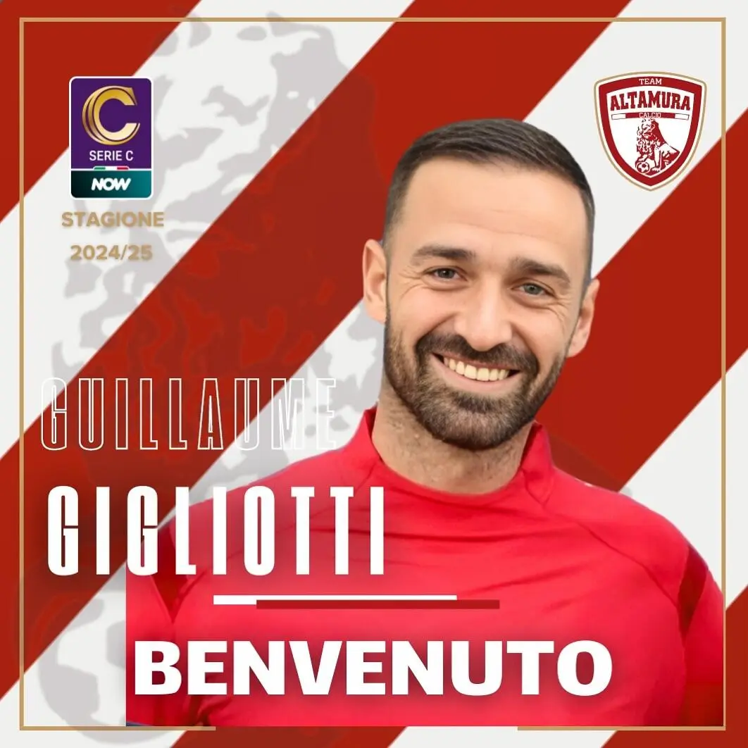 eam Altamura comunica di aver acquisito i diritti per le prestazioni sportive per la Stagione 2024/25 del calciatore 𝗚𝘂𝗶𝗹𝗹𝗮𝘂𝗺𝗲 𝗚𝗶𝗴𝗹𝗶𝗼𝘁𝘁𝗶.