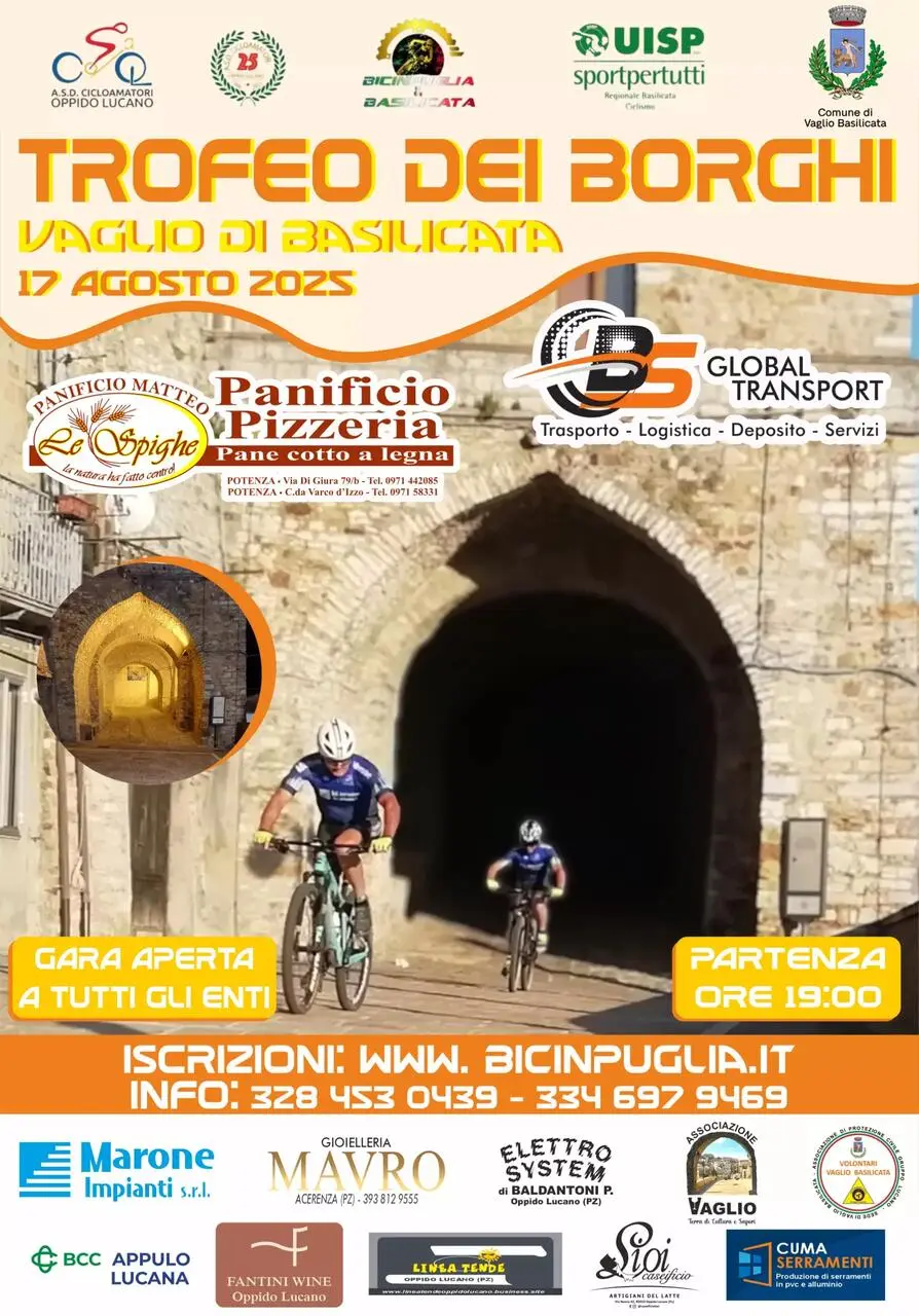 Il Trofeo dei Borghi – Vaglio Basilicata è pronto a tornare domenica 17 agosto 2025, grazie all’organizzazione dell’ASD Cicloamatori Oppido Lucano, che presenta la 6ª tappa del circuito Trofeo dei Borghi BicinPuglia 2025.