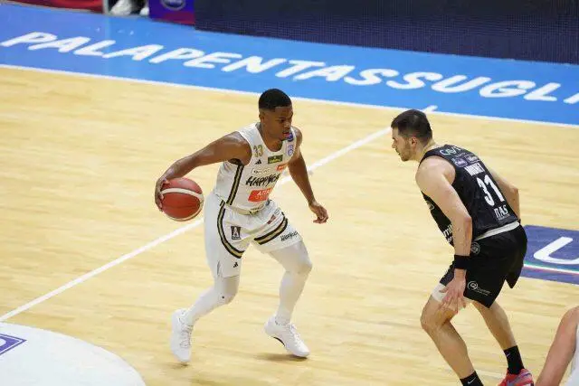 Molto combattiva la Dolomiti di coach Galbiati, arrivata al PalaPentassuglia priva nella rotazione lunghi di Udom e Grazulis, capace di realizzare 48 punti nel primo tempo al PalaPentassuglia. La Happy Casa stringe le maglie in difesa al rientro in campo e riesce ad avere ottimo apporto da parte di tutti gli uomini a disposizione. Laquintana, Riismaa (due su due da tre punti), Morris e Smith garantiscono 36 punti totali dalla panchina, un plus di notevole importanza per coach Sakota. Finale vincente al PalaPentassuglia in vista di un finale di stagione ancora tutto da scrivere.