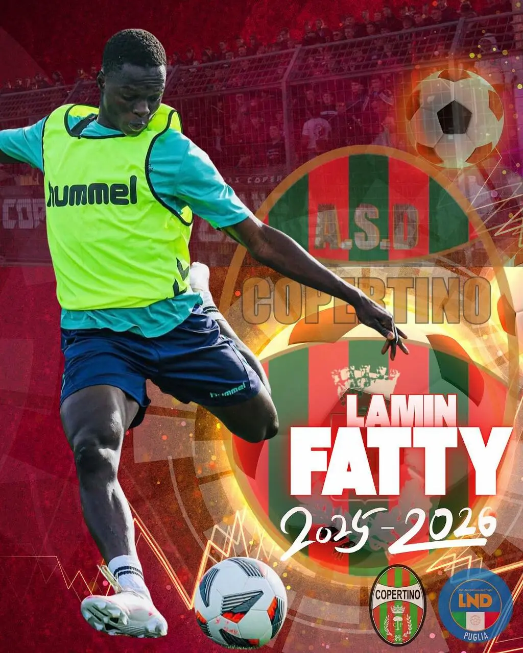 Dopo un lungo corteggiamento, e dopo aver “bruciato” tutte le concorrenti, il Copertino Calcio del Direttore Sportivo Daniele Lillo, si assicura le prestazioni sportive del forte attaccante Lamin Fatty.