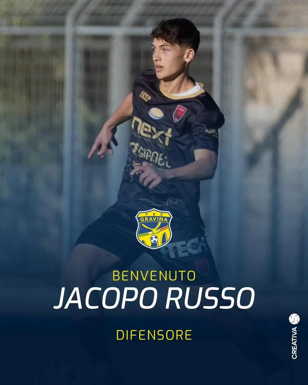 La FBC Gravina comunica l’acquisizione delle prestazioni sportive del calciatore Jacopo Russo. Duttile difensore classe 2004, Russo è cresciuto nel settore giovanile del Lecce, disputando anche un campionato di Primavera 1. Successivamente ha iniziato la carriera con i “grandi” nel Nardò, vincendo i playoff del girone H nella stagione 2023-2024 alle dipendenze di mister Ragno. Nella passata stagione ha indossato la maglia del Francavilla in Sinni, totalizzando 32 presenze.