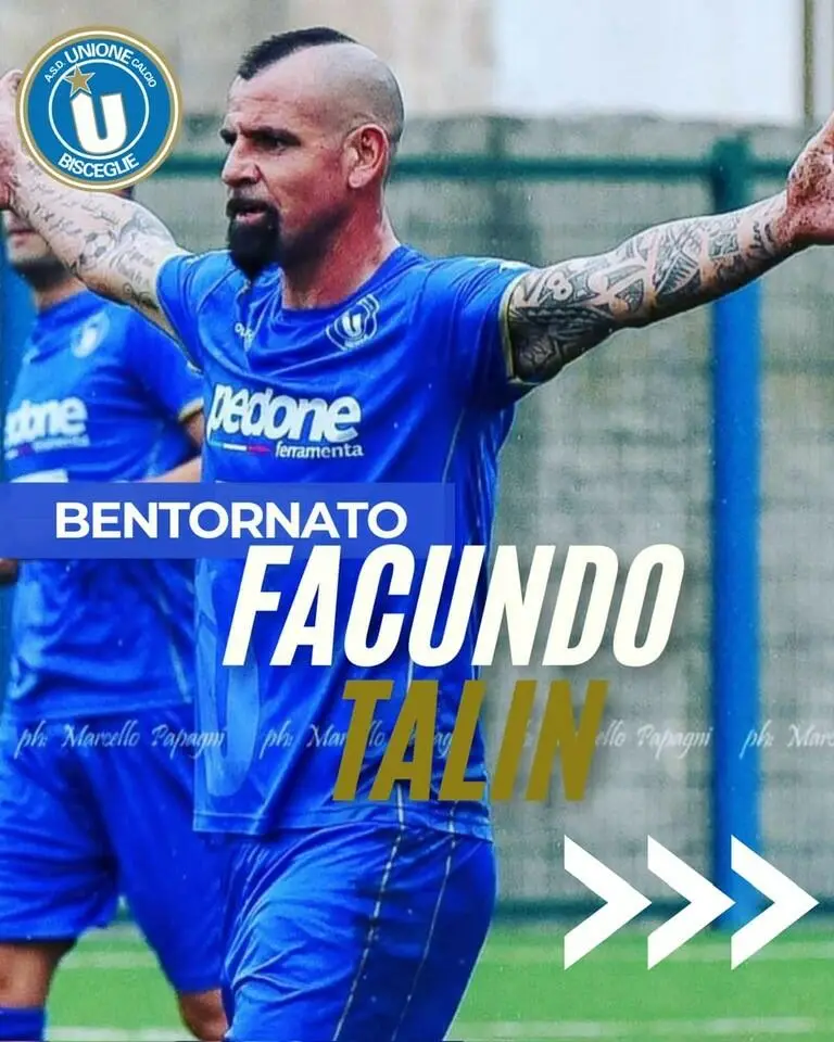 Grande colpo in difesa per l'Unione Calcio Bisceglie, che riabbraccia, dopo una stagione al Canosa Calcio, l'esperto difensore centrale argentino classe '87 Facundo Talin.