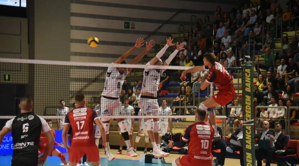 La Gioiella Prisma Taranto cede in casa contro la Sonepar Padova in 4 set. (25-18, 25-27, 23-25, 18-25) Dopo un inizio convincente in cui i rossoblù sembravano aver neutralizzato le bocche di fuoco patavine, gli ionici soccombono alle diverse soluzioni dei veneti, nonostante tutto il match si sia giocato all’insegna dell’equilibrio e degli scambi lunghi, una vera e propria battaglia di fronte a circa 1600 spettatori. Sul campo patavino l’mvp è Sedlacek, anche top scorer del team, mentre tra i rossoblù Gironi e Lanza ne mettono a terra 16. Molti gli errori degli ionici che nei momenti cruciali del match non riescono a chiudere i giochi e i vantaggi vengono così ribaltati permettendo agli ospiti la vittoria finale.