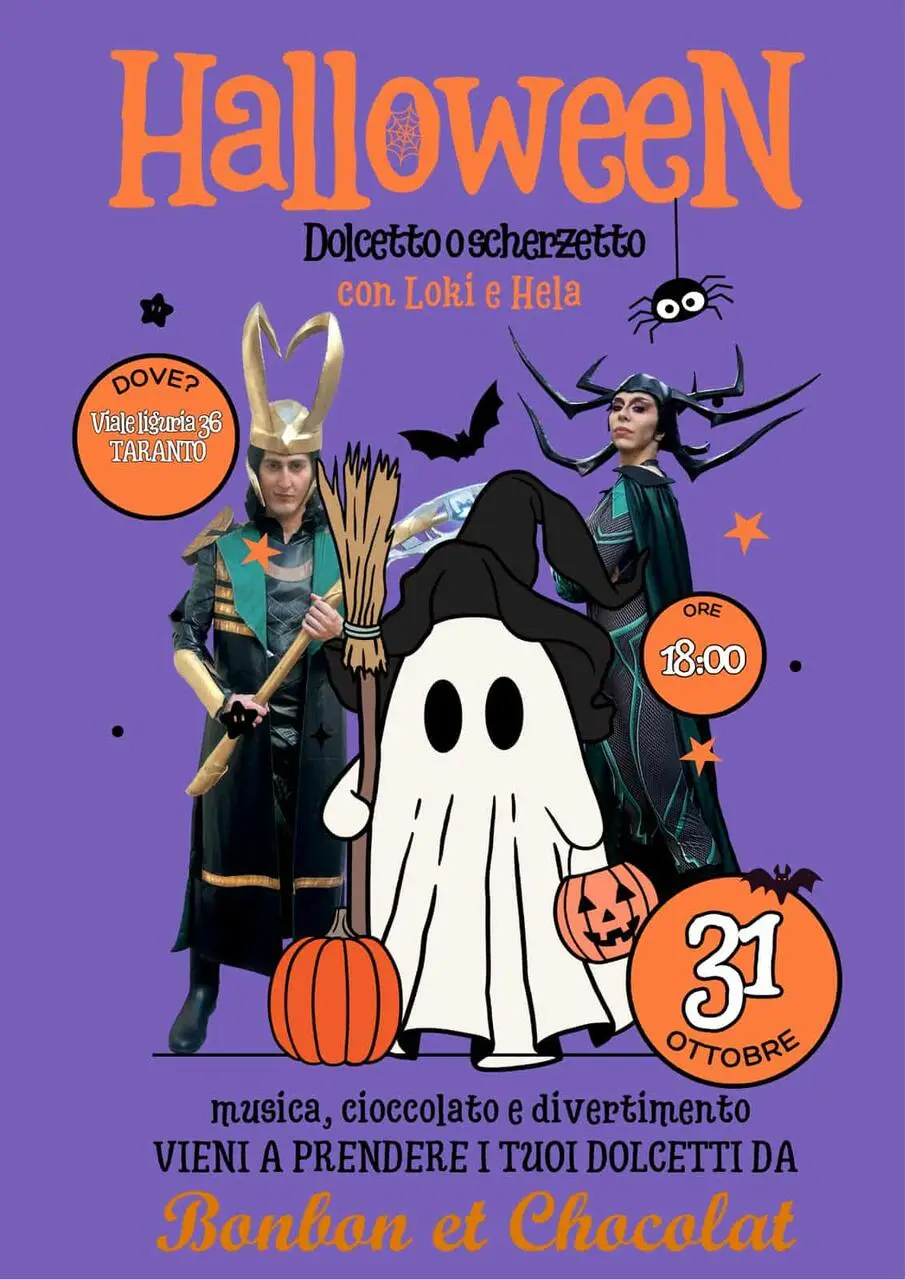 Da Bonbon Et Chocolat è tutto pronto per una grandissima festa di Halloween con altri due personaggi dell'Associazione Giò Giò e i Supereroi che il 31 ottobre dalle 18, animeranno la notte più paurosa dell'anno: protagonisti di questa saranno Loki ed Hela che intratterranno i passanti con tante foto. Per l'occasione potrete comprare i vostri “dolcetti” proprio presso “Bonbon Et Chocolat” (Via Liguria).