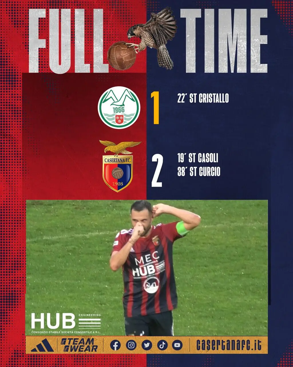 Reti: 22’st Cristallo(M); 19’st Casoli, 38’st Curcio(C)