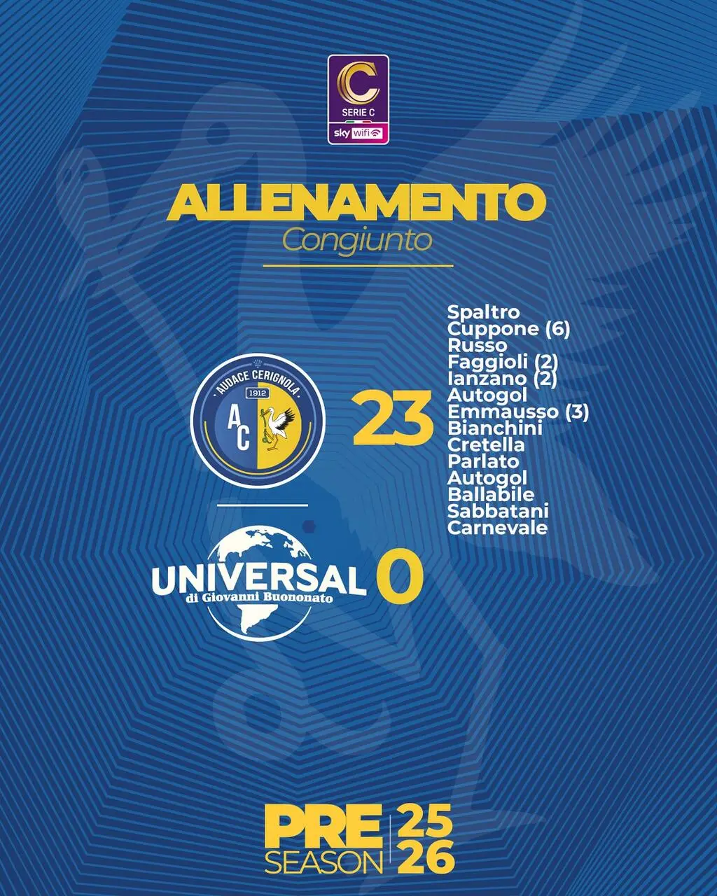 Audace Cerignola: ventitrè reti nella seconda sgambata