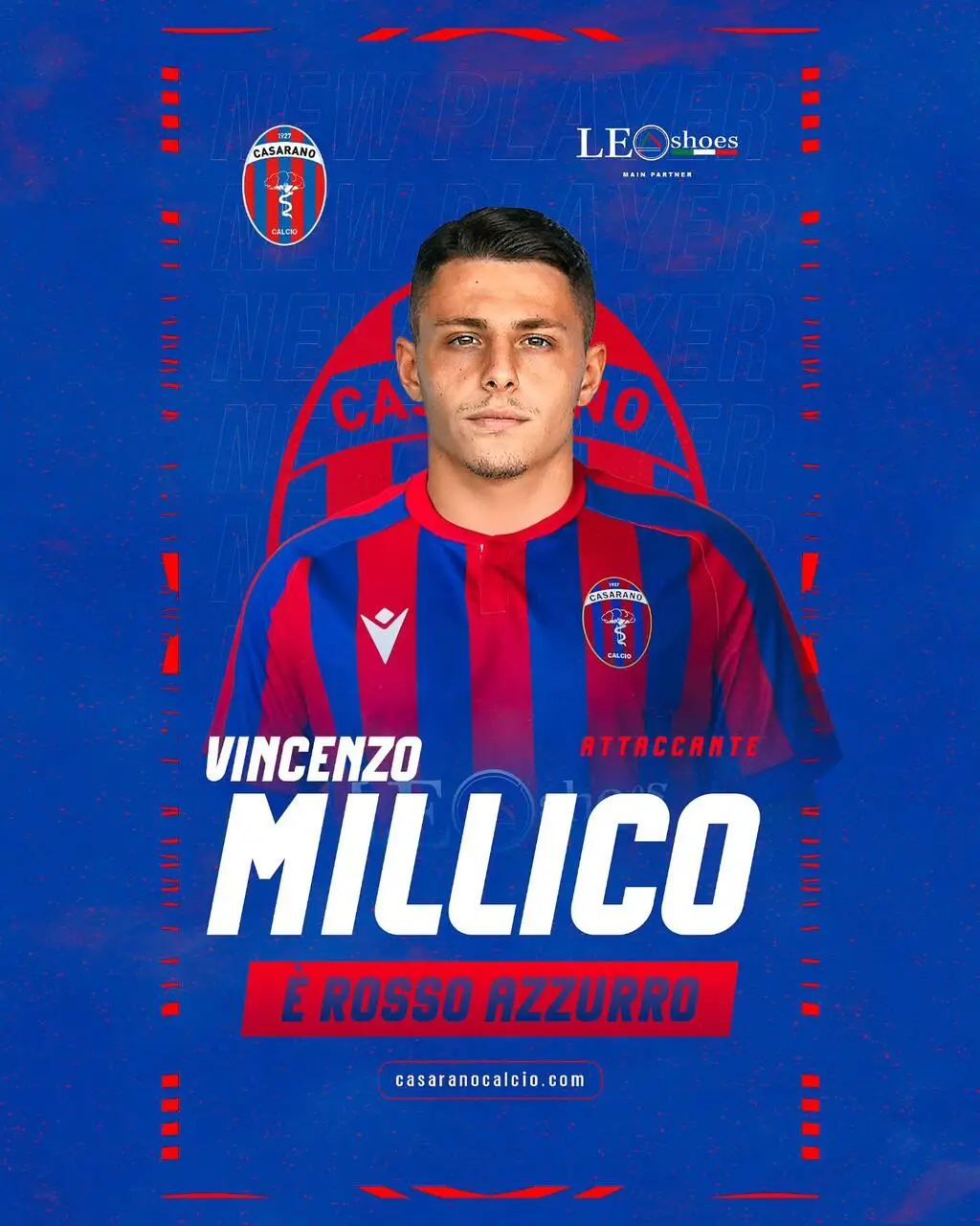 La società Casarano Calcio comunica di aver acquisito le prestazioni professionali del calciatore Vincenzo Millico, attaccante classe 2000.