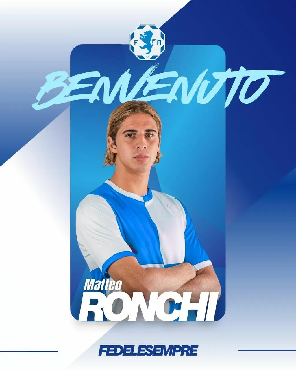 La Fidelis Andria comunica l'acquisto a titolo definitivo del giocatore Matteo Ronchi. Classe '96, il difensore centrale riminese nella scorsa stagione ha giocato in serie D nel Fiorenzuola 1922 registrando 35 presenze, 1 gol e 1 assist. In passato ha indossato le maglie del Livorno, del Forlì, del Trento Calcio e del Ravenna.
