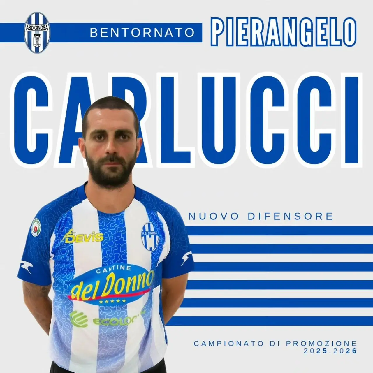 Ritorna in quel di Ginosa, il forte difensore Tarantino Pierangelo Carlucci, che ha già vestito la maglia biancoazzurra dalla stagione sportiva 2018/19 alla stagione sportiva 2021/22 conquistando disputando 2 Campionati di Promozione ed 1 di Eccellenza.