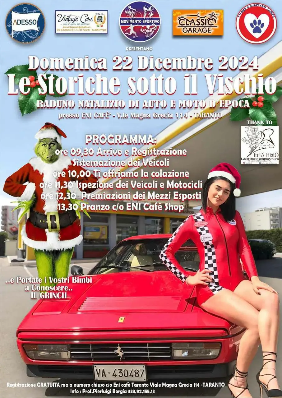 Ancora un grande evento in programma per l'Associazione Giò Giò e i Supereroi che domenica 22 dicembre sarà presente a Taranto, in Viale Magna Grecia 114 (presso ENI Cafè) a “Le storiche sotto il vischio” raduno natalizio di auto e moto d'epoca. Portate i vostri bambini a conoscere il Grinch tra sorrisi e tante foto ricordo. Non mancate.