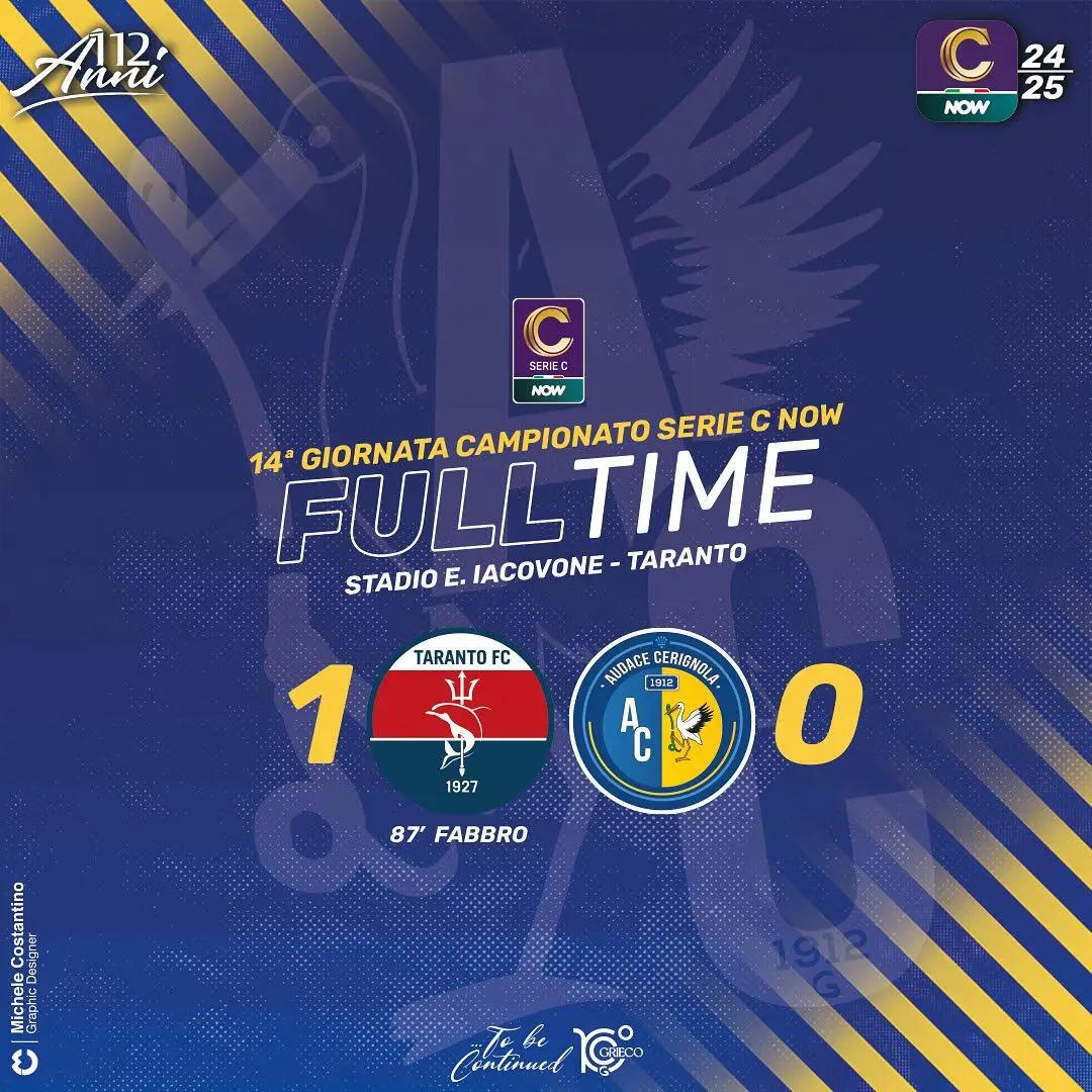 VIDEO Taranto-Audace Cerignola 1-0. La sintesi di Antenna Sud