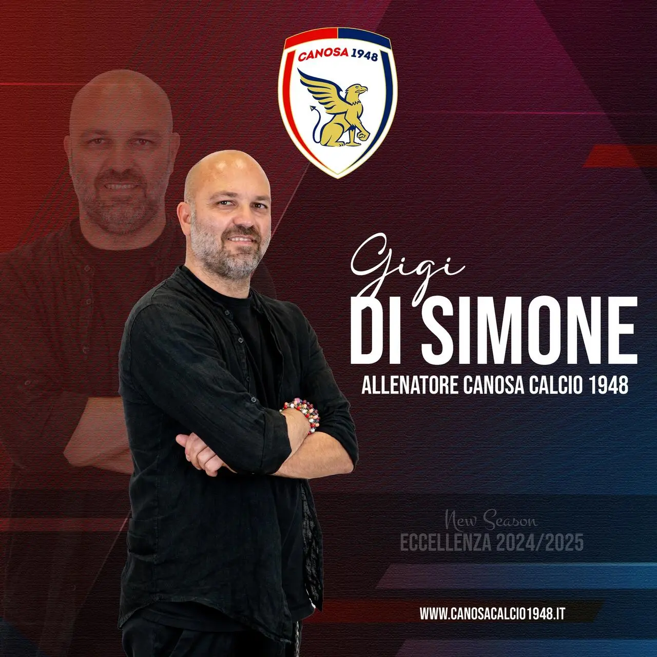 Dopo le indiscrezioni girate nei giorni scorsi, ora l’ufficialità: sarà mister Gigi Di Simone la nuova guida tecnica del Canosa Calcio 1948 per la stagione 2024/2025. Una scelta mirata ed oculata quella del presidente Alessandro Di Nunno e del direttore sportivo Gianco Francavilla che dopo aver posto le basi del nuovo progetto nella stagione da poco conclusasi, intendono dare continuità a quanto di buono ottenuto in un’Eccellenza, la prossima, che sarà sicuramente contraddistinta da un elevato tasso di competitività. Reduce dall’ottimo campionato sulla panchina dello Spinazzola, condotta alla salvezza grazie ad una seconda parte di campionato quasi perfetta, il tecnico classe ’78 inizia la propria carriera da allenatore nell’Under 14 della Fidelis Andria, per poi approdare nella SSC Bari alla guida dell’Under 14. Nella stagione 2018/2019 la sua prima esperienza in una prima squadra, nel ruolo di vice allenatore alla Vastese in Serie D per poi, nell’annata 2019/2020, esser scelto come guida tecnica dell’Unione Calcio Bisceglie in Eccellenza. Nel 2020 arriva la chiamata del Bisceglie in C, progetto questo che sposa ricoprendo il ruolo di allenatore in seconda.