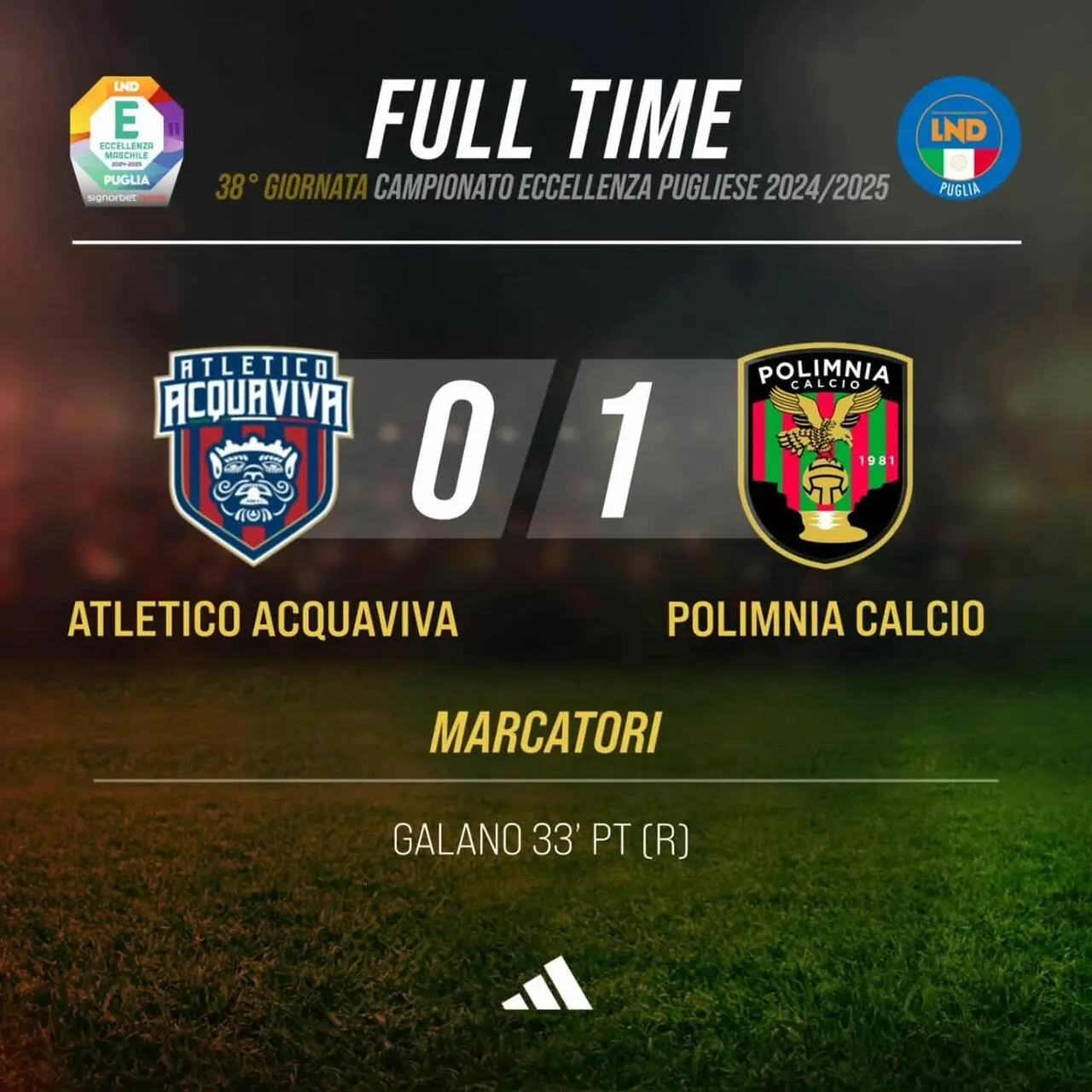 VIDEO Atletico Acquaviva-Polimnia 0-1. La sintesi di Tele Sveva