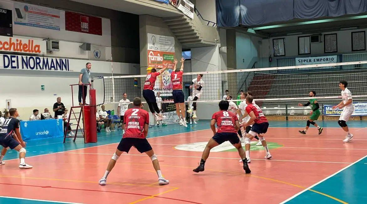 Nuova uscita per la Prisma Taranto Volley, impegnata al Pala Macchitella di San Vito dei Normanni in un test match di beneficenza organizzato dalla Scuola Pallavolo San Vito contro la Romeo Sorrento che si chiude 3-1 per gli ionici (25-18, 17-25, 25-17, 25-19). Un appuntamento che, oltre al valore sportivo, ha assunto un significato speciale grazie alla finalità solidale dell’evento, coinvolgendo pubblico e appassionati in una cornice di pallavolo e condivisione.