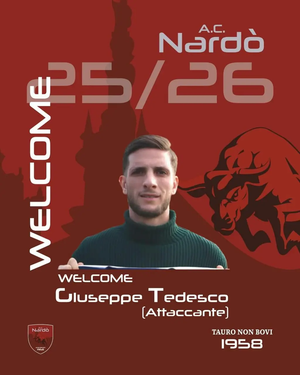 L’AC Nardò è orgogliosa di annunciare l’arrivo di Giuseppe Tedesco, attaccante classe ’97 nativo di Altamura, che vestirà la maglia granata nella stagione 2025/2026!
