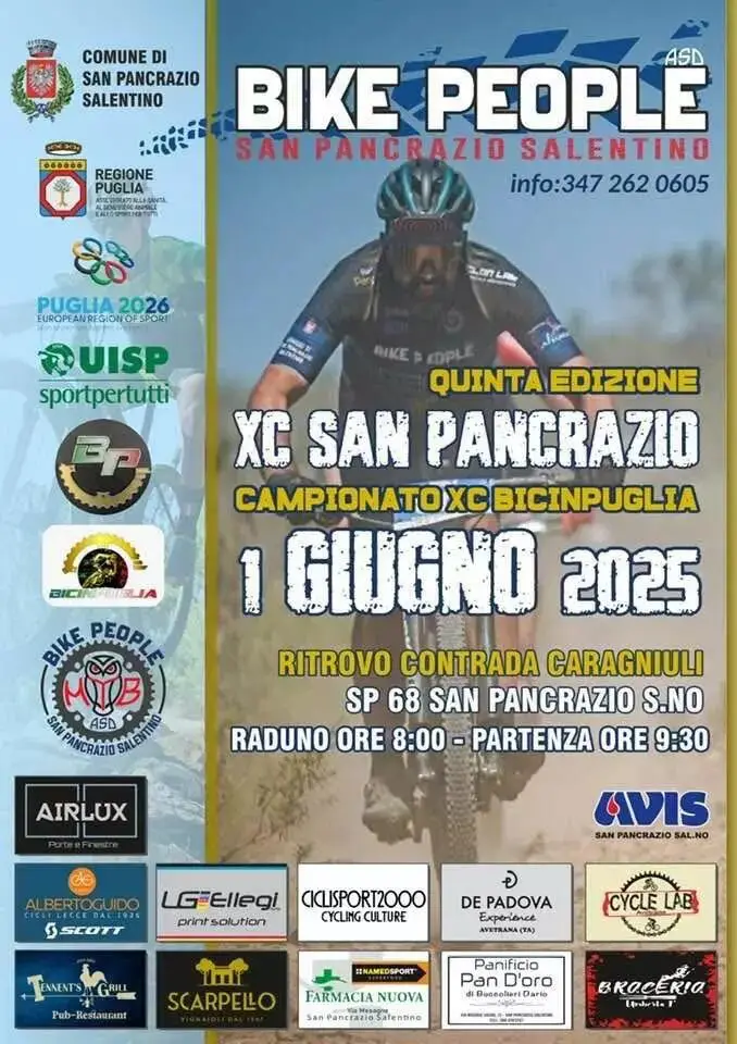 Domenica 1° giugno andrà in scena la XC San Pancrazio, sesta tappa del prestigioso Gran Premio XC del circuito Bicinpuglia, organizzata con impegno e dedizione dall’ASD Bike People in collaborazione con UISP Puglia.