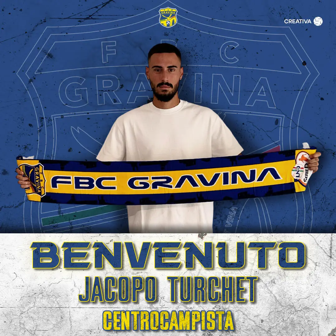 La FBC Gravina comunica l’acquisizione delle prestazioni sportive del calciatore Jacopo Turchet. Nato a Latina, classe 2002, Turchet è un centrocampista forte fisicamente e con buone qualità tecniche. Cresciuto nel settore giovanile del Genoa, con il quale ha giocato nelle selezione U17, U18 e Primavera 1, Turchet nella sua giovane carriera ha militato nella Torres, nel Derthona e nel Portici, club impegnato lo scorso anno nel girone I. Turchet, arrivato a Gravina all’inizio della settimana, è a disposizione di mister Tiozzo in vista della gara di domenica a Martina.