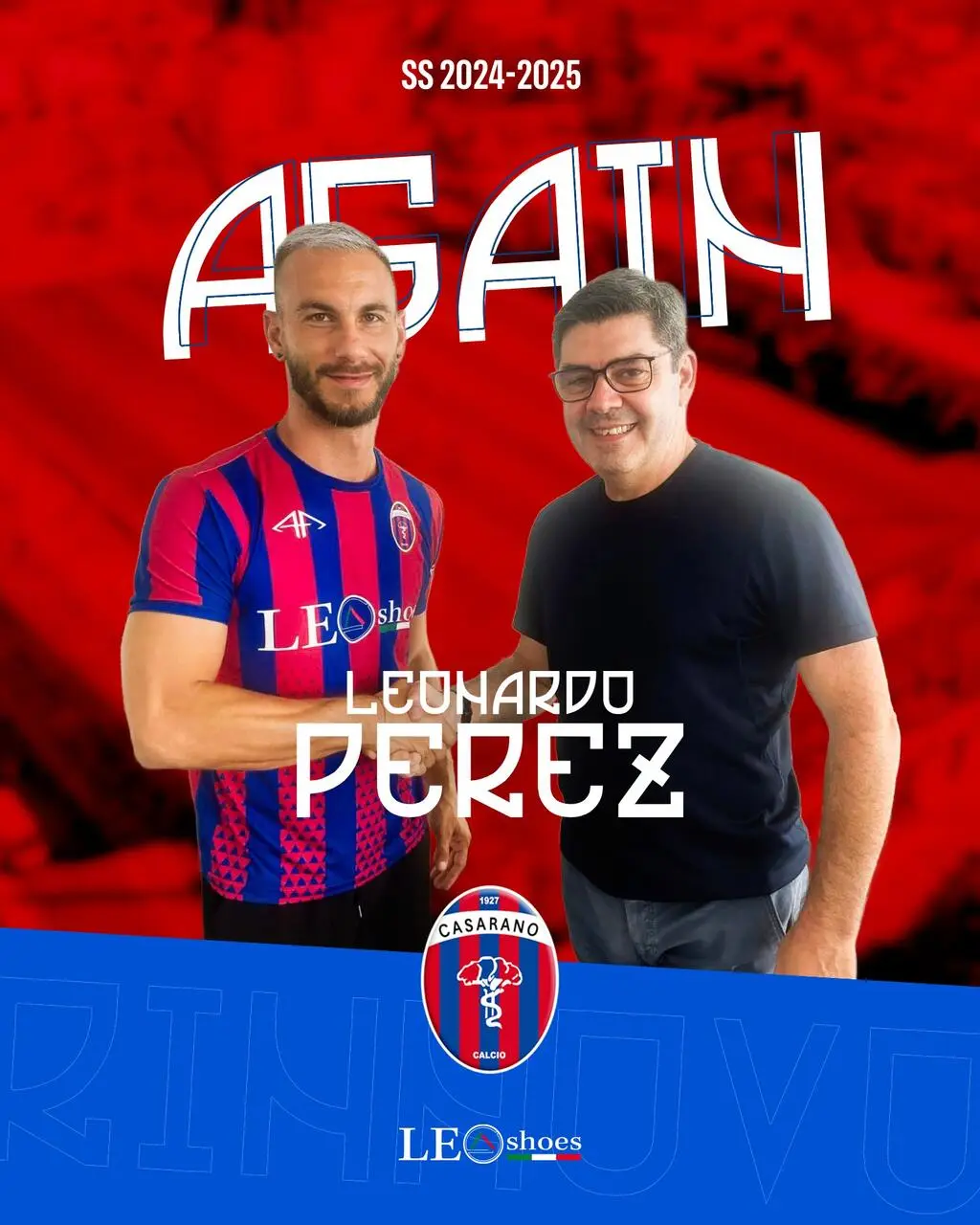 La società Casarano calcio comunica di aver rinnovato il diritto alle prestazioni sportive del calciatore Leonardo Perez che, anche per la stagione 2024-2025, indosserà la maglia rossazzurra.