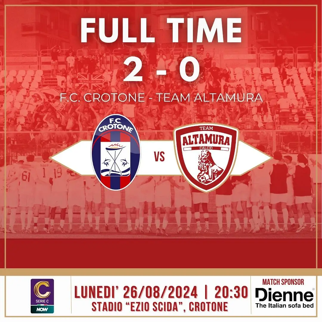 Crotone: Sala; Rispoli, Cargnelutti, Di Pasquale (32’st D’Aprile), Giron; Vinicius (32’st Schirò), Gallo; Spina (1’st Silva), Tumminello (43’st Rojas), Vitale (32’st Oviszach), Gomez. A disp. : D’Alterio, Martino, Guerini, Groppelli, Kolaj, Stronati, Cantisani, Aprea, Chiarella, Nicoletti. All. Longo