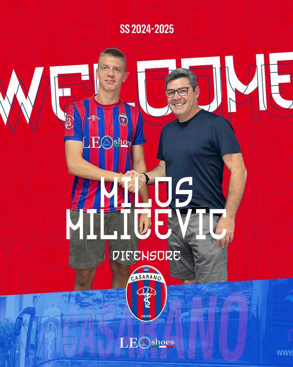 La società Casarano calcio comunica di aver acquisito il diritto alle prestazioni sportive del calciatore Milos Milicevic, difensore, classe 2006. Di nazionalità serba, Milicevic ha cominciato la sua carriera nelle giovanili della Triestina per poi passare al Pordenone e poi al Torino. Il calciatore è reduce dalla stagione con la maglia del Koper U19, in NextGen Liga, campionato giovanile sloveno.