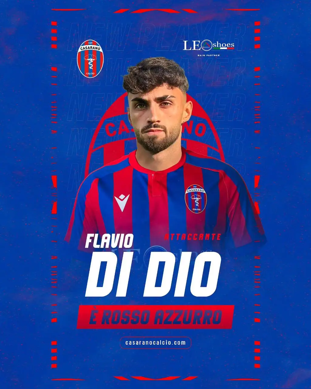 La società Casarano calcio comunica di aver acquisito le prestazioni professionali del calciatore Flavio Di Dio, classe 2002, esterno d’attacco, che arriva dalla Juve Stabia.
