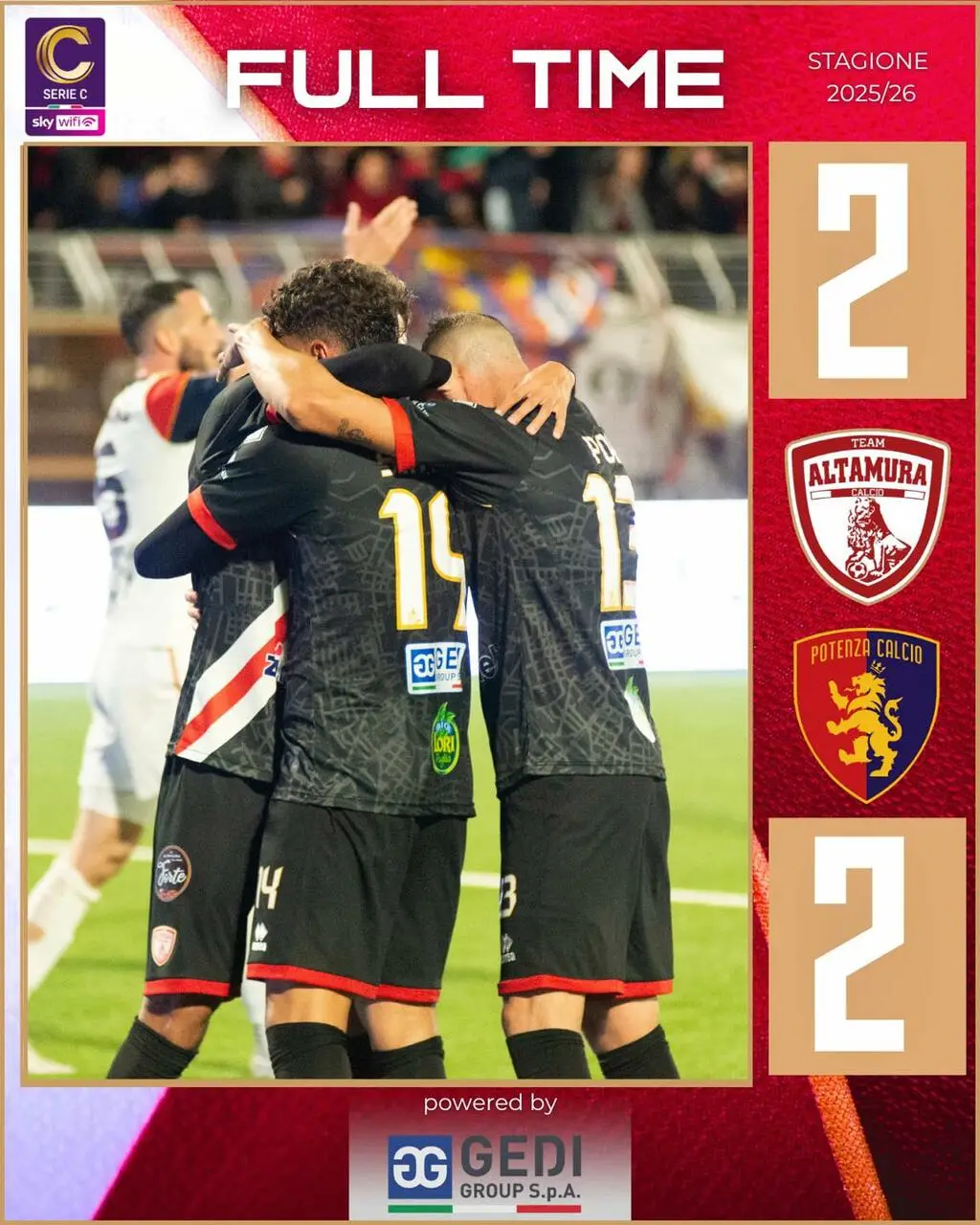 Reti: al 33' st Grande M. (Altamura) , al 45'+2 st Simone G. (Altamura) al 12' pt Petrungaro L. (Potenza) , al 35' pt Lucas Martello (Potenza) .