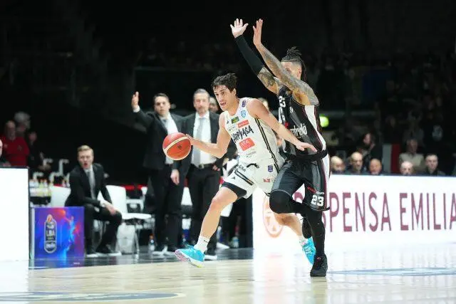 VIRTUS SEGAFREDO BOLOGNA: Lundberg 16 (2/2, 3/5, 3 r.), Belinelli 16 (2/4, 4/6, 2 r.), Pajola 12 (3/3, 2/5, 2 r.), Mascolo 11 (2/5, 2/2, 1 r.), Hackett 6 (0/1, 1/1, 1 r.), Mickey 9 (1/2, 1/2, 1 r.), Polonara 7 (2/3, 0/2, 15 r.), Zizic 9 (4/9, 7 r.), Dunston 4 (2/2), Abass 6 (1/3, 1/3, 2 r.), Cordinier 7 (2/3, 1/1, 2 r.), Menalo. All.: Banchi.
