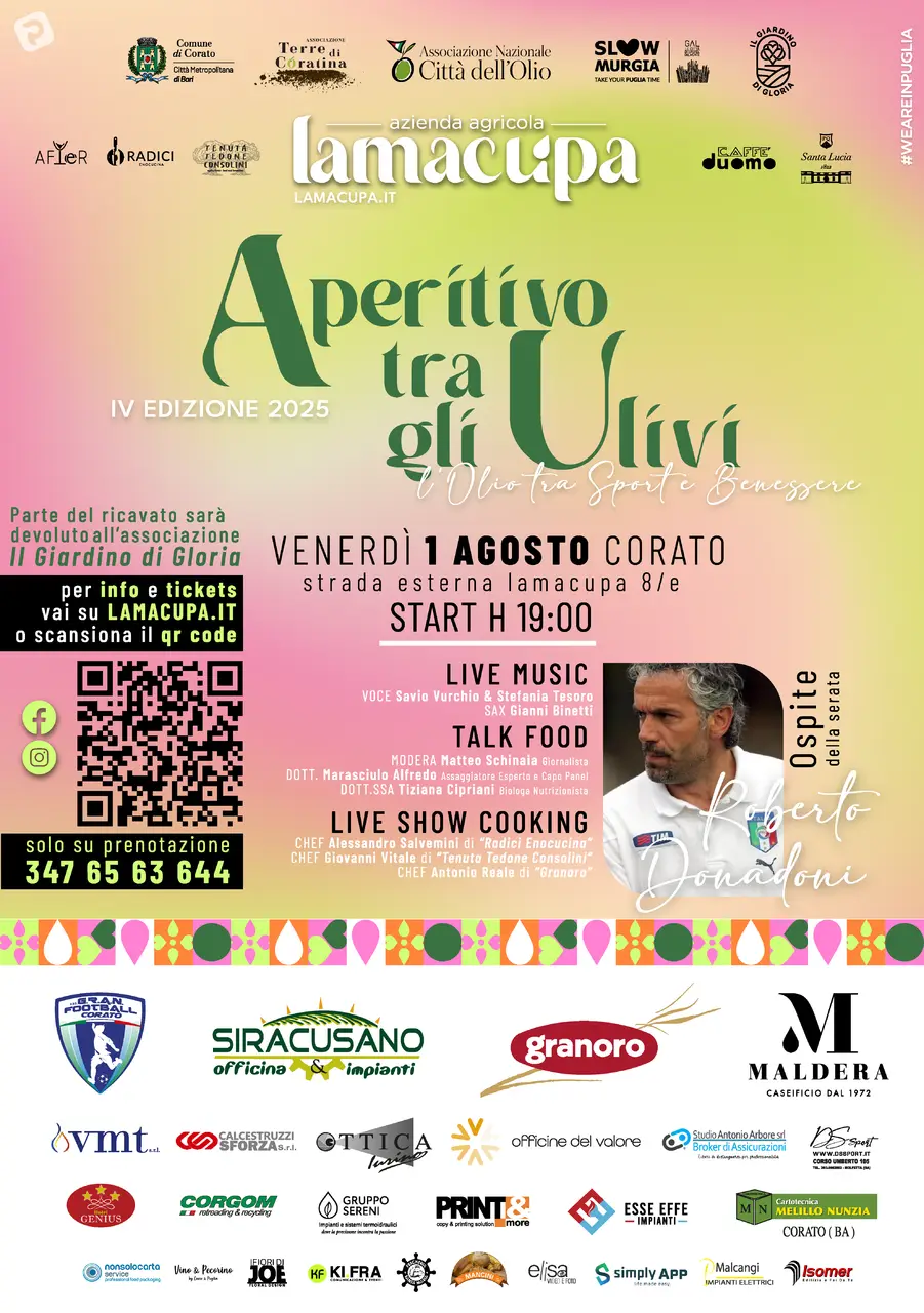 Roberto Donadoni, stella della serie A e della Nazionale italiana, sarà il protagonista dell’evento che si terrà nell’uliveto dell’azienda Lamacupa a Corato.