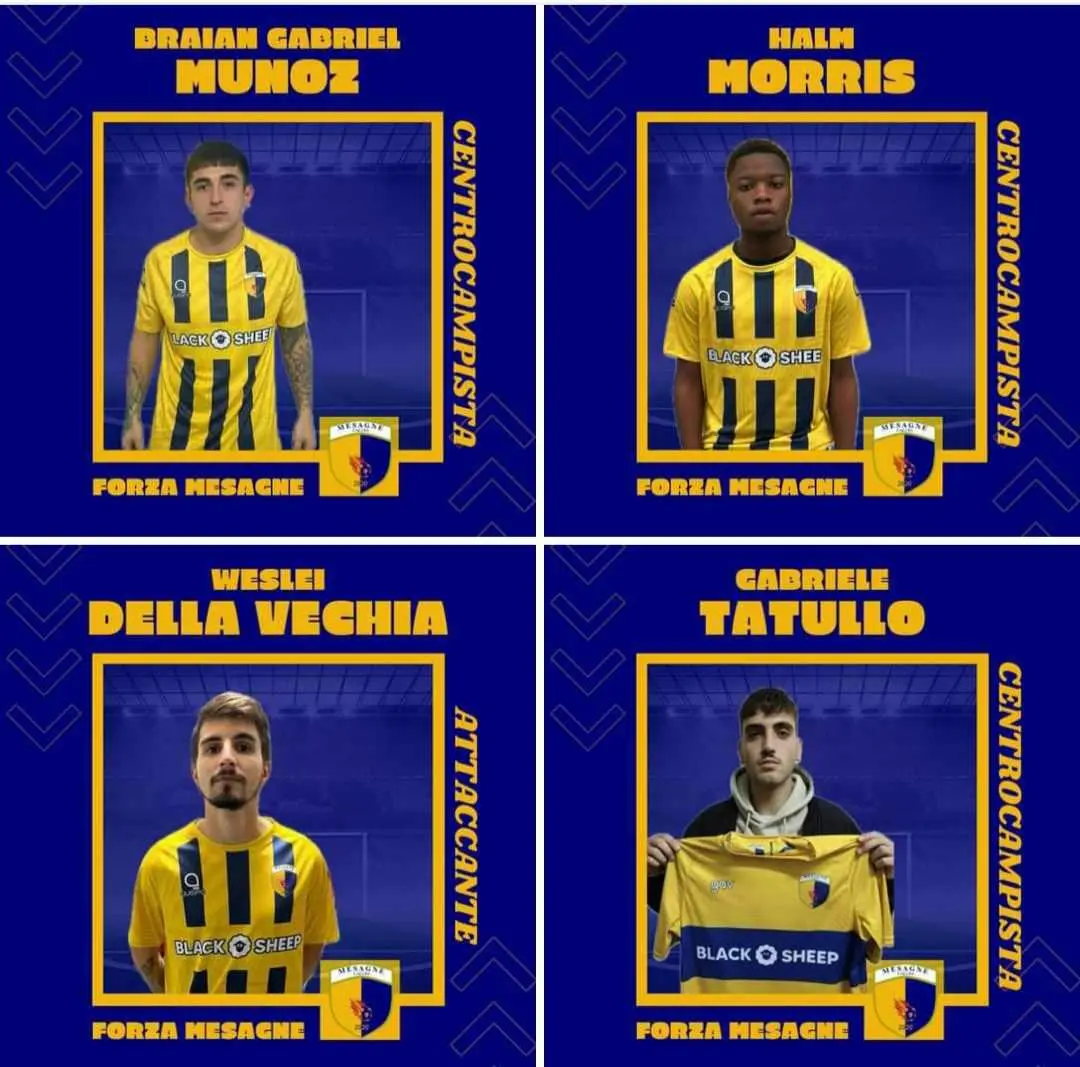 Il Mesagne Calcio comunica il tesseramento di quattro nuovi calciatori, che andranno a arricchire la rosa di mister Germano e saranno disponibili già da domenica contro il SSD San Pietro Vernotico.