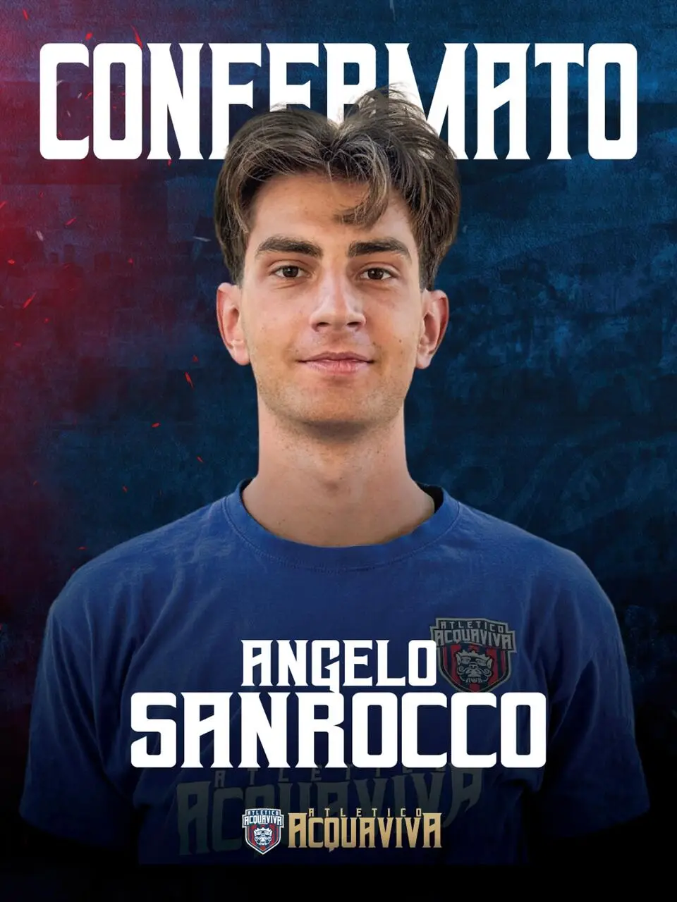 Angelo Sanrocco portiere classe 2004 confermato per il 2025/26! Cresciuto nella Nick Calcio Bari, poi giovane di Serie al Monopoli e successivamente Juniores Nazionale del Team Altamura prima dell’arrivo ad Acquaviva.