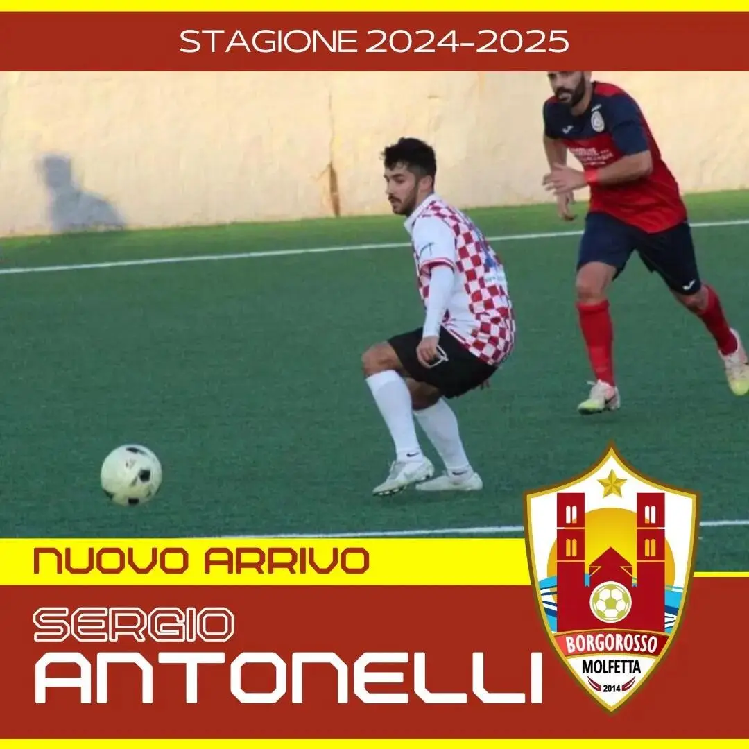 Il Borgorosso Molfetta si assicura a centrocampo le prestazioni di 𝗦𝗲𝗿𝗴𝗶𝗼 𝗔𝗻𝘁𝗼𝗻𝗲𝗹𝗹𝗶 che porterà freschezza, velocità e qualità in rosa: classe 2000, ha militato nelle ultime cinque stagioni con la Virtus Molfetta in Prima Categoria segnando ben 42 reti in maglia biancorossa. In precedenza ha giocato con la Molfetta Sportiva in Eccellenza e con il Gravina con cui ha giocato nel campionato Juniores nazionale.