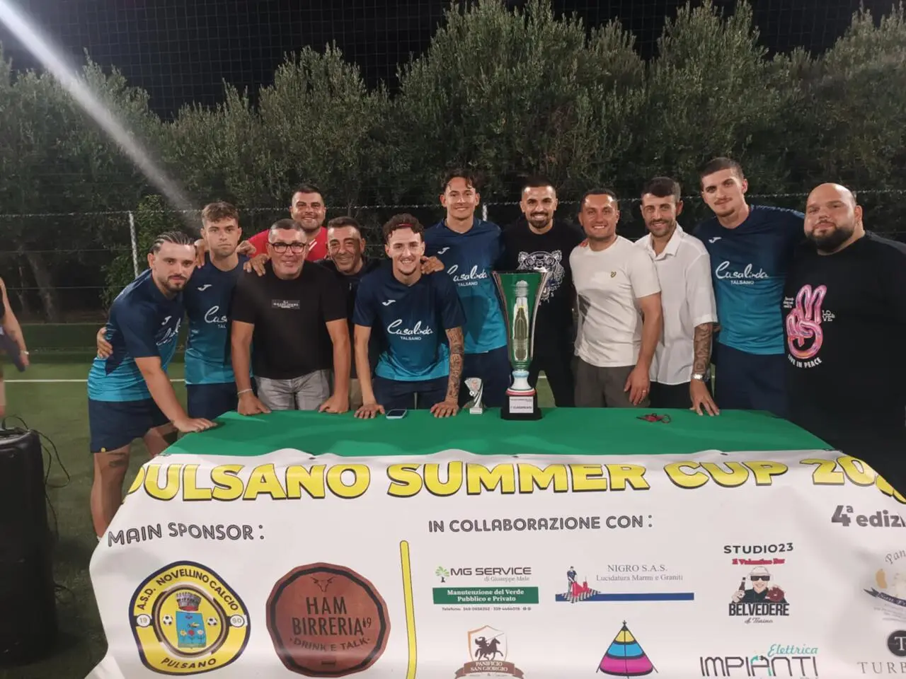 E’ terminata giovedì sera la Summer Cup 2025 grande evento di calcio a 5 organizzato da Walter Novellino, Gianluca Tomaselli e Rodolfo Sampietro presso il rinomato Centro Sportivo “L’Ulivo di Pulsano. Grazie ad una grande prestazione l’Elettrica Impianti vince e porta a casa il trofeo, per 3-11, su una Teepee & Gargaro rimaneggiata. Una bella partita giocata davanti ad una gran cornice di pubblico e sotto gli occhi del Sindaco pulsanese Pietro D’Alfonso e della Delegata allo Sport Francesca Tomaselli. Per la cronaca le reti del match portano la firma di Versace (4), Quinto (3), Latagliata (2), Giannace e Odone per Elettrica Impianti mentre Galeone, Boccuni e un autogol sono i marcatori della Teepee & Gargaro. La finale è stata arbitrata da Emanuele Ciaccia e dell'ASD Taranto Spartana.