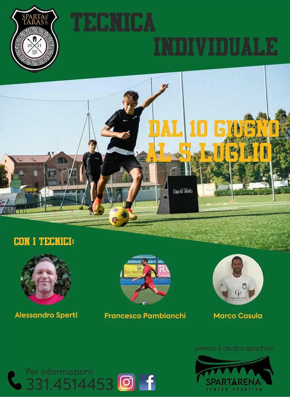 La scuola calcio Sparta Taras organizza, dal 10 giugno al 5 luglio, lezioni di tecnica individuale con tecnici preparati come Marco Casula, Francesco Pambianchi e Alessadro Sperti. Le lezioni si terranno presso il Centro Sportivo SpartArena di Lama. Per maggiori info chiamare il 3314514453.