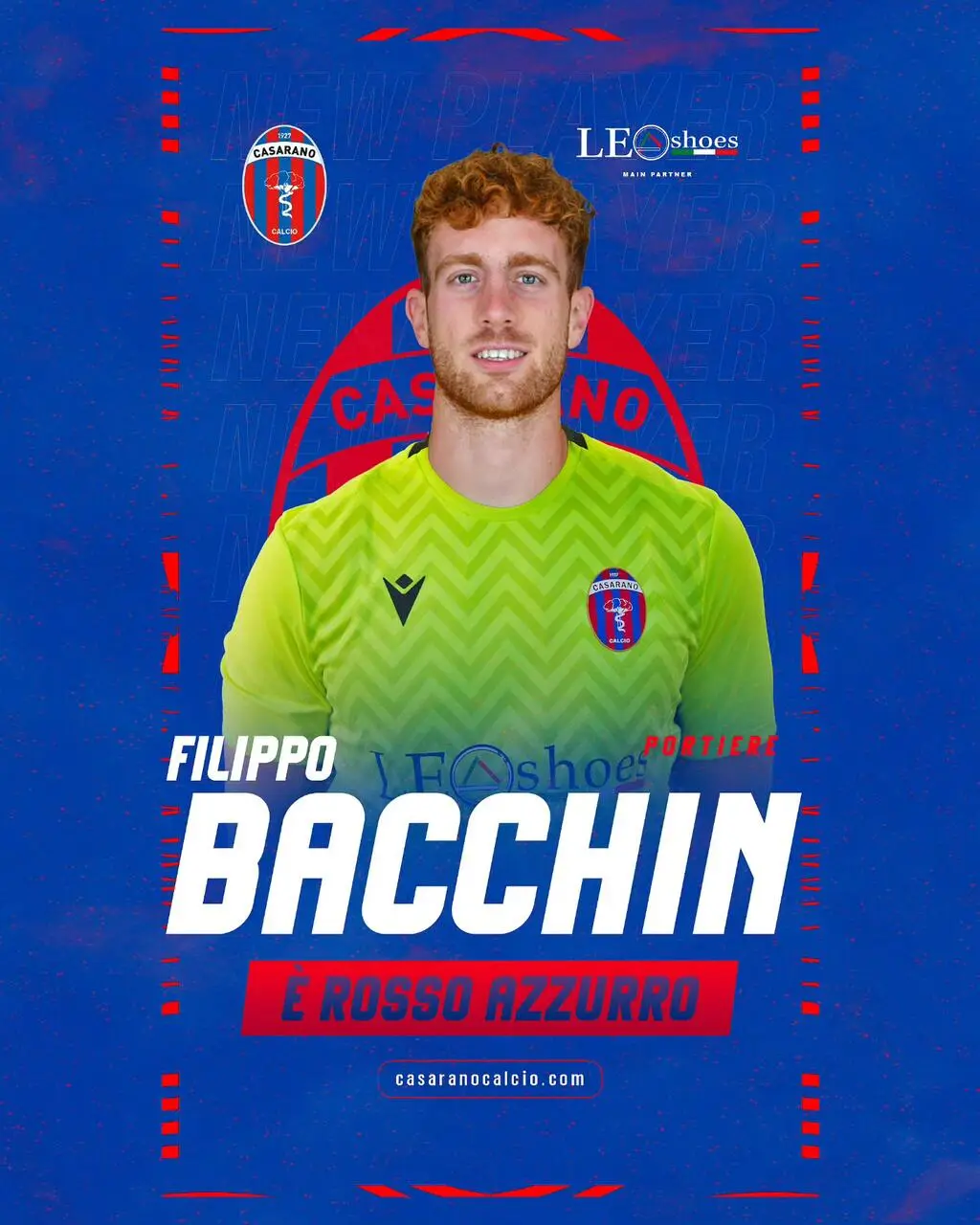 La società Casarano calcio comunica di aver acquisito le prestazioni professionali del calciatore Filippo Bacchin, classe 2002, portiere, proveniente dall’Alcione Milano.