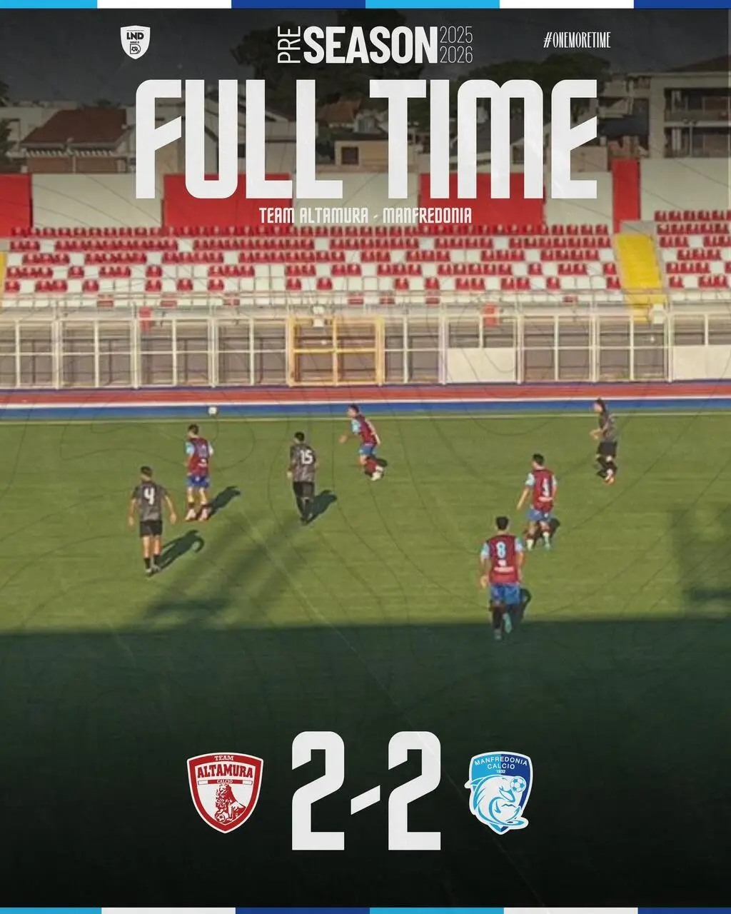 Si è concluso con il risultato di 2-2 l’allenamento congiunto allo Stadio “D’Angelo” tra Team Altamura (Serie C) e Manfredonia Calcio 1932.
