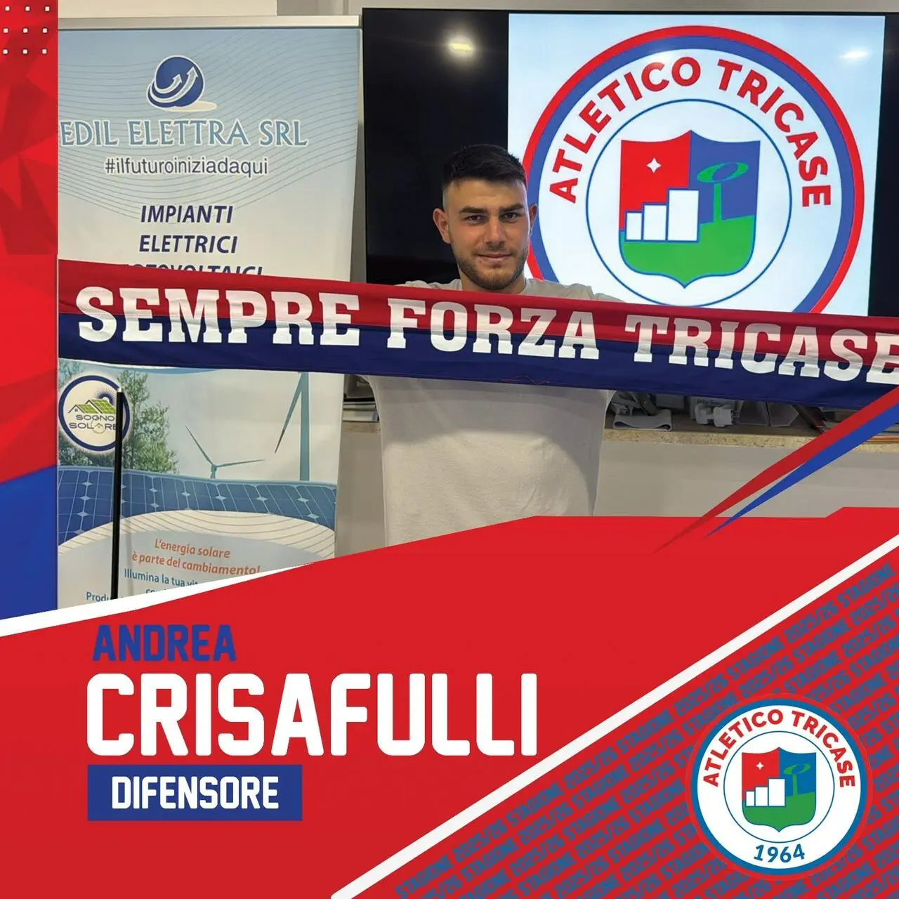 L'ASD Atletico Tricase è lieta di annunciare il ritorno in squadra del difensore Andrea Crisafulli