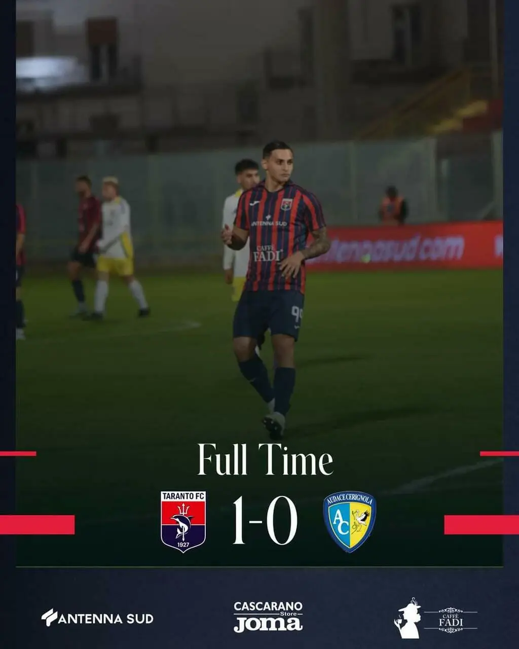 Note: Angoli: 0-11. Recupero: 1'pt e 5'st. Stadio ''Erasmo Iacovone'' - Taranto. Partita iniziata alle ore 20.30