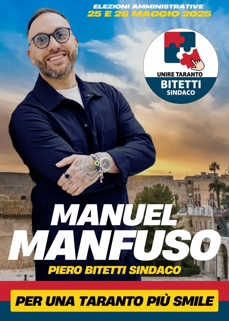 In un periodo difficile, in cui molti vedono il bicchiere mezzo vuoto, c’è chi lo riempie di spritz, caffè e idee. È con questo spirito positivo che Manuel Manfuso, classe 1989, perito commerciale, organizzatore di eventi e imprenditore, si candida al Consiglio Comunale di Taranto con il partito “Unire Taranto”.